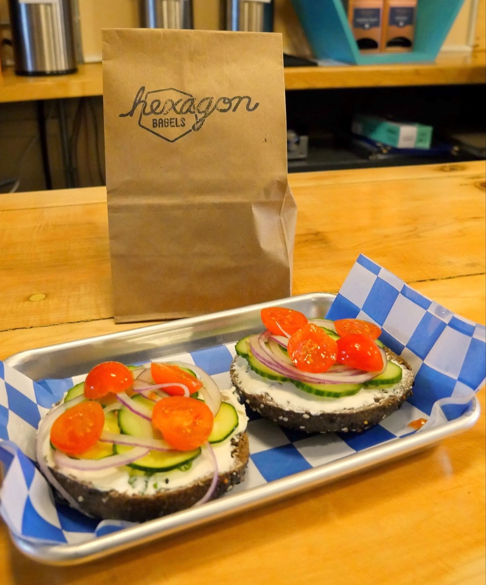 well as lox and schmear. They also offer vegan cream cheese options. Hexagon’s